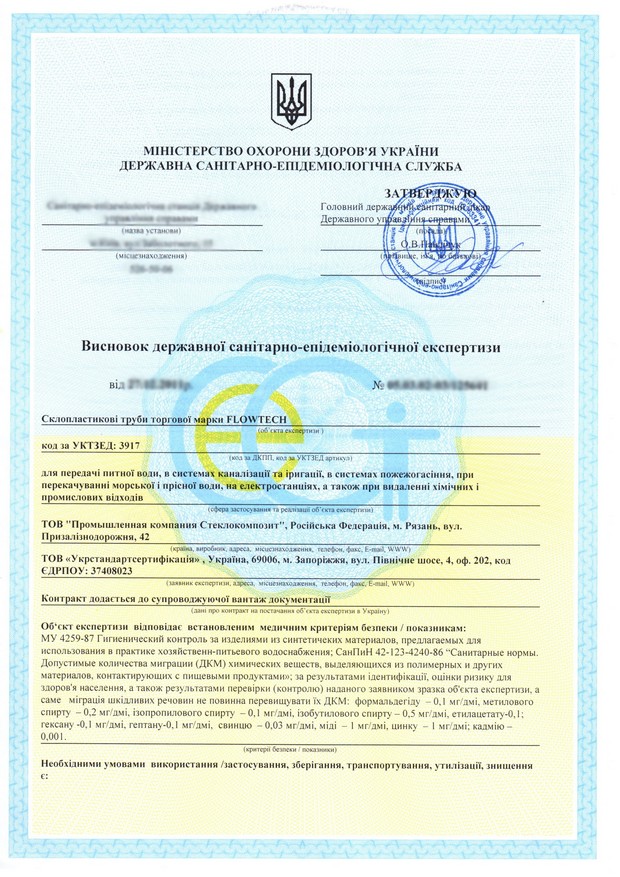 Санитарно-эпидемиологическое заключение (СЭЗ) или гигиенический сертификат – документ, подтверждающий, что продукция прошла необходимую санитарно-гигиеническую проверку и соответствует всем санитарным правилам и нормам Украины. Санитарно-эпидемиологическое заключение подтверждает безопасность продукции для здоровья и жизни людей и окружающей среды.